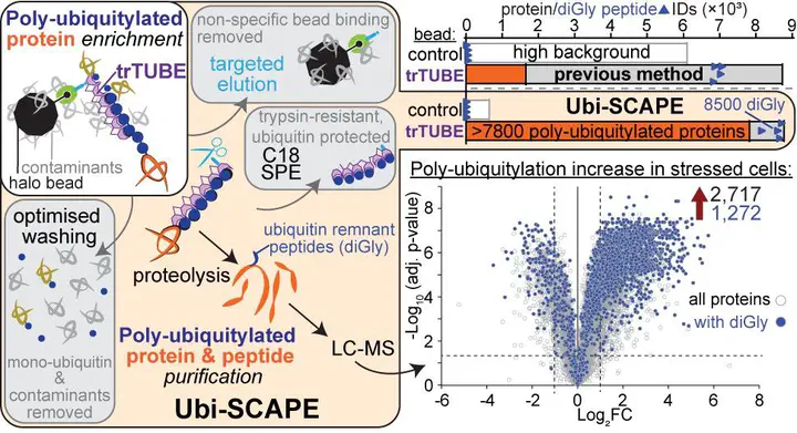 Check out Ubi-SCAPE! A tonne of hard work and thorough optimisations from (now former postdoc) Harvey went into getting the most out of the TUBE-based poly-ubiquitylomics workflow; don’t worry, we’ve kept the pre-print short…